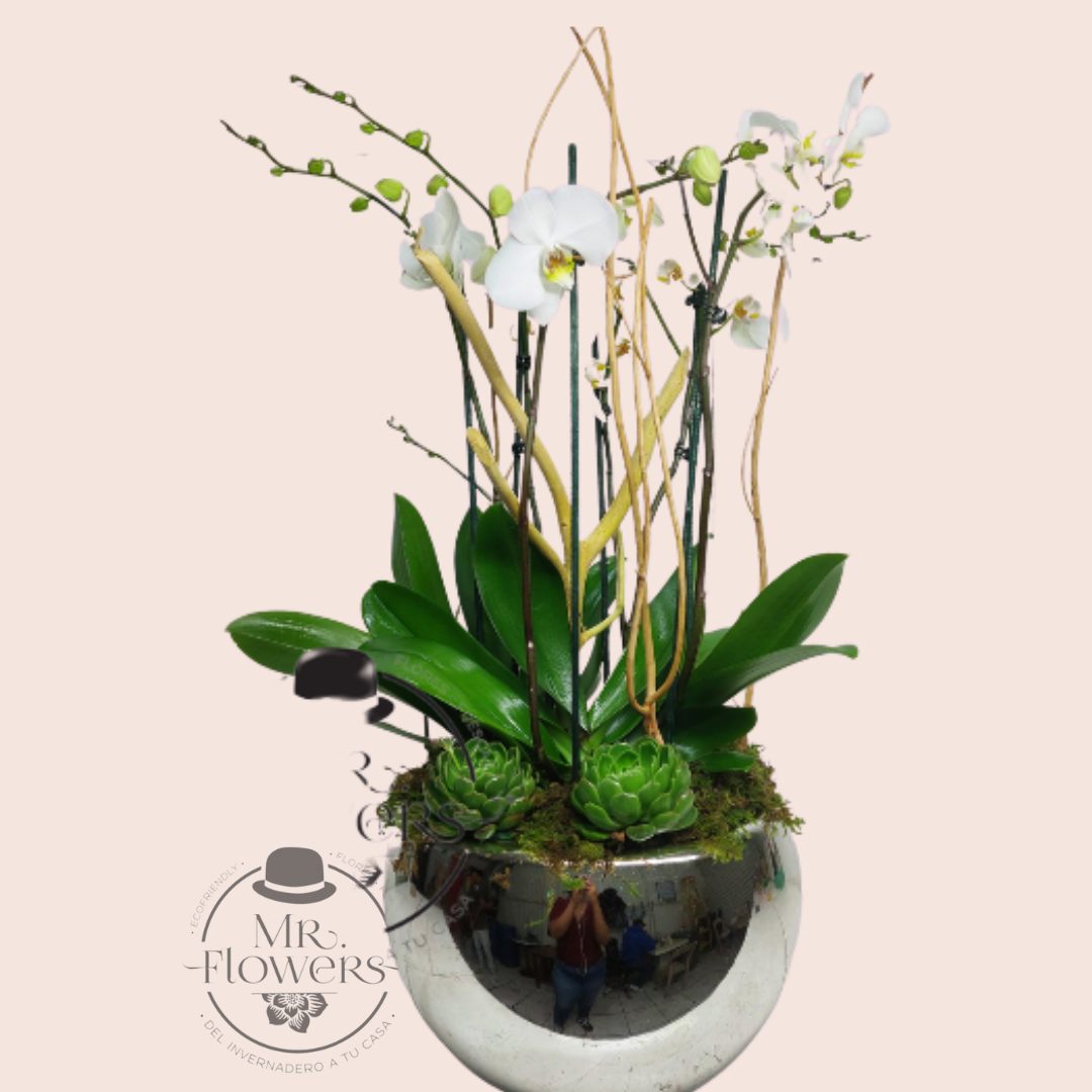 Etiquetas: 3 Orquídeas Dobles Blancas, Arreglos Florales con Orquideas, Florería Mr. Flowers