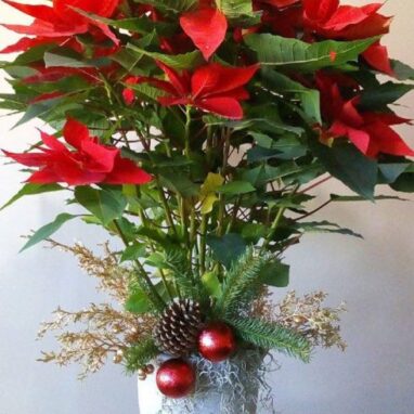 Regálale este clásico arreglo de Orquídea y Nochebuena. (la base puede variar según disponibilidad).