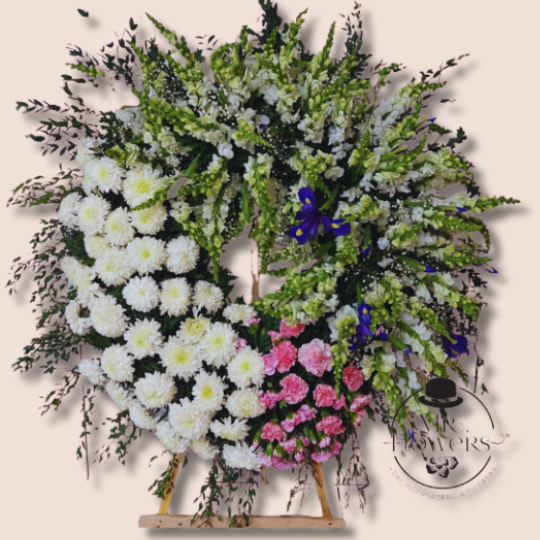 Hermosa y Original corona fúnebre chica ideal para dar el último adios.